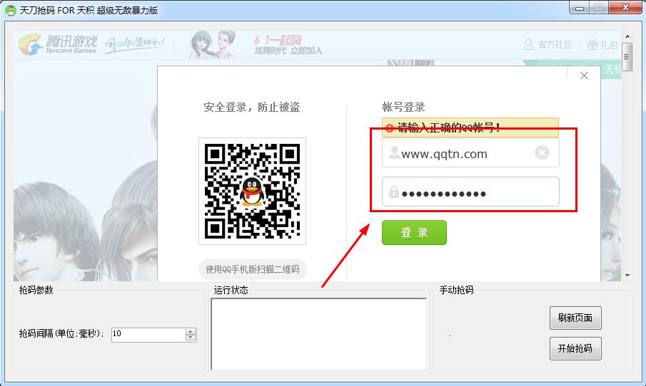 很多小伙伴们和小编一样攒满了天涯明月刀1500的天积点,但是是在抢不到码啊,几分钟就被抢完了,太坑爹了。今天小编为大家带来这款天涯明月刀天积点抢激活码神器,此抢码神器的原理就是帮你无限刷新网页,别人点一次你可以点十次,提高抢到激活码的概率,当然不保证完全能抢到哦,祝各位好运!