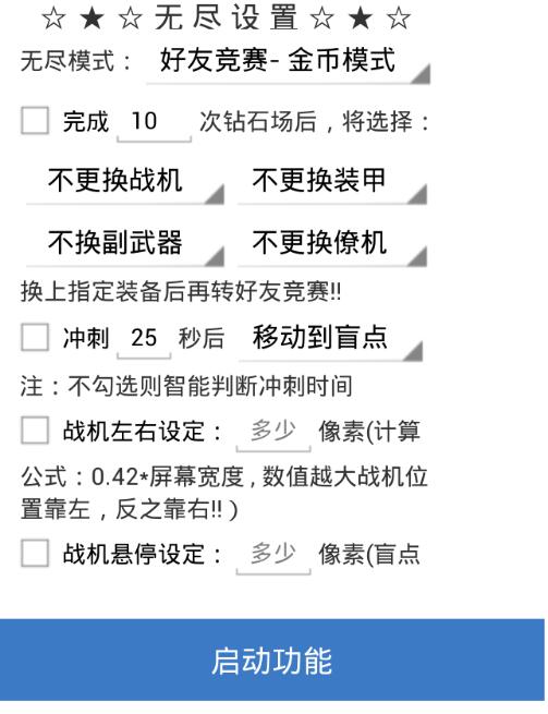 在脚本打开后设置所需要使用的功能后点击“启动功能”