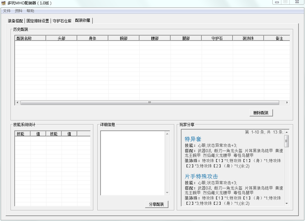 友情提示:如果选择太多技能的话,可能游戏中根本不可能配出这样的套装,所以会搜索不到结果哦!
