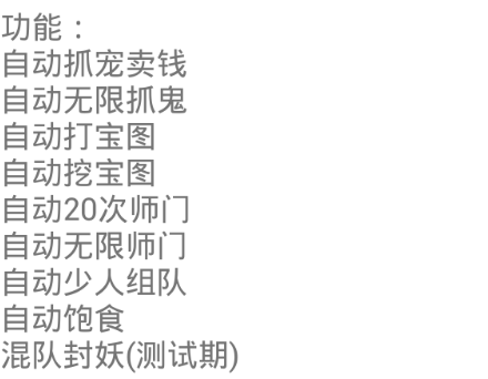 腾牛网为神武的玩家们带来一款自动刷图辅助下载!这款辅助包含自动抓宠卖钱、自动无限抓鬼、自动打宝图、自动无限师门等等,功能全面且强大!喜欢的玩家们不要错过啦!