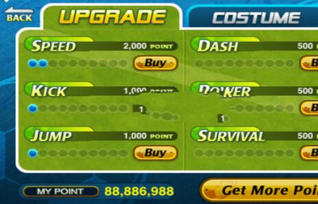 头球破门:一款双人对战的Q版足球游戏,采用2D画面,可与AI进行对战,有街机和职业赛事两种玩法,虚拟按键操作,采用头顶和脚射两种动作将球攻入对方大门,总之越过对手进入龙门即可得分,你可以使用Super,当能量储满后按 POWER 即可射出高速球,但注意高度,别被对手拦下来!相当有趣好玩!游戏还有点小暴力,除了可以踢球外,你还能攻击对方队员,把对方揍个鼻青脸肿,十分搞笑。