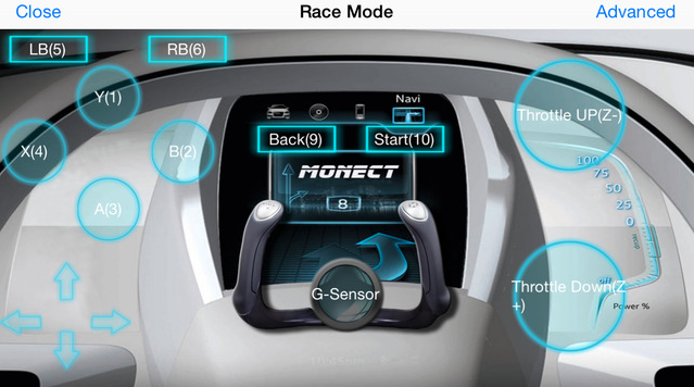 赛车模式 - 使用手机上的重力感应来玩电脑上的赛车游戏,完美支持各种赛车游戏,如极品飞车系列,尘埃系列等。。。